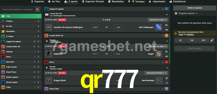 A aposta qr777 oferece aos jogadores a experiência mais conveniente de apostas em eSports!